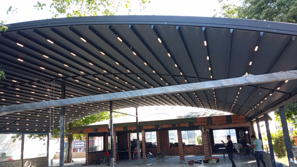 Dış mekânlarda estetik görünümle birlikte konforu da ön planda tutan Elmas Tente, yeni nesil bükümlü pergola tente sistemleri ile fark yaratıyor. Özellikle cafe, restoran, otel ve sosyal alanlar için tasarlanan bu sistemler, zarif kıvrımlı yapısı ve modern çizgileriyle mekânlara şıklık kazandırıyor.