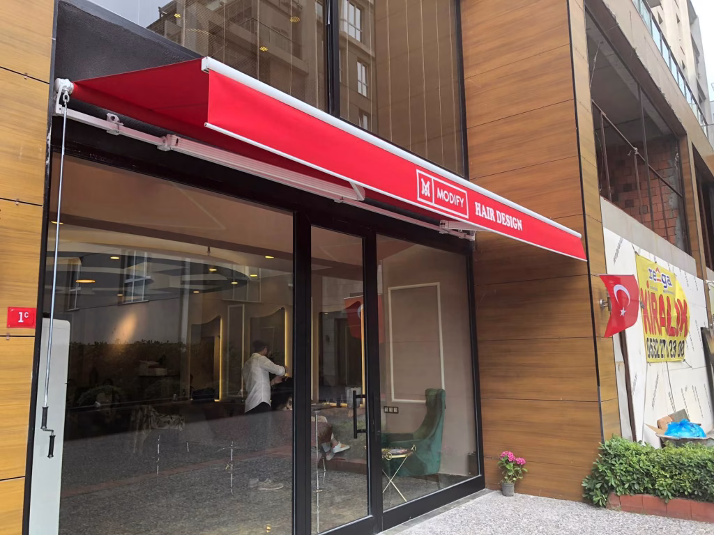 Manav, market ve dükkan önlerinde kullanılan mafsallı tenteler, ürünlerin güneşten zarar görmesini engellerken aynı zamanda müşteriler için gölgelik alan oluşturur.