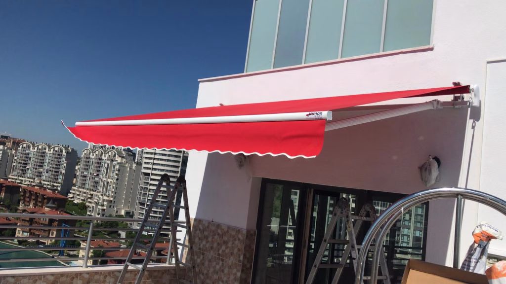 - 3×3 m balkon veya dükkan önü tente: 12.000 – 18.000 TL